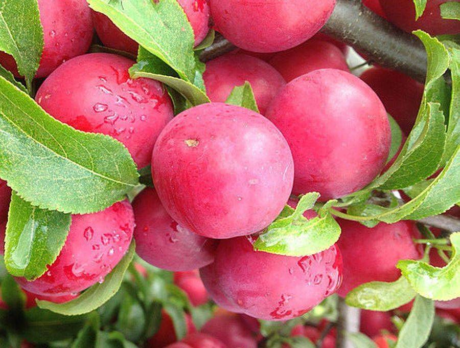 Саженцы алычи сорта Лама порадуют высокой декоративностью кроны и отличными вкусовыми качествами плодов. На протяжении летнего сезона растение будет украшать загородный участок яркой листвой красного оттенка. К середине августа на ветвях крупномеров алычи созревают крупные ягоды.