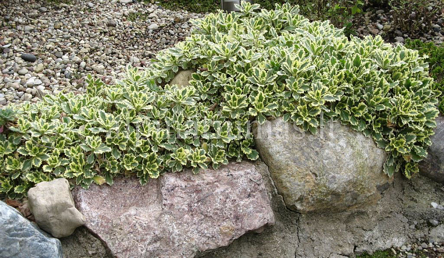 Саженцы арабиса (резухи) кавказского Вариегата (Variegata) ценятся за высокую декоративность и простой уход. Растение представляет собой компактный вечнозеленый куст высотой до 30 сантиметров. Зеленые листья имеют зубчатые края, желтовато-белый цвет которых резко контрастирует с остальной зеленой поверхностью. В конце весны распускаются белоснежные цветы, аромат которых наполняет воздух сада. Чтобы растение сохраняло декоративность в течение всего года, после цветения необходимо произвести легкую формирующую обрезку. Зеленую листву, лишенную декоративной окраски, также рекомендовано удалять.