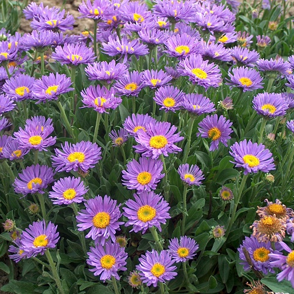 Астра альпийская фиолетовая - это изысканное растение с нежными фиолетовыми цветками, которые привлекают внимание своей красотой. Этот сорт астры отличается компактным размером до 30 см и обильным цветением в течение 2 месяцев. Листья астры имеют ярко-зеленый оттенок и создают гармоничный контраст с цветками.