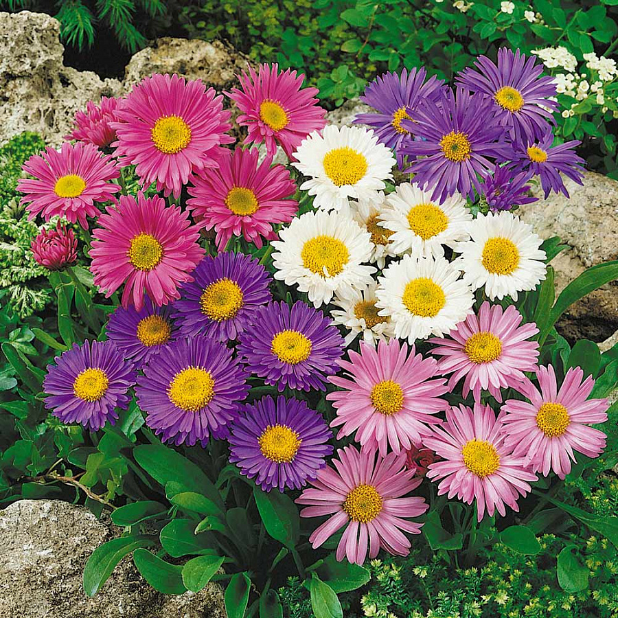 Семена астры многолетней "Альпийская смесь" сеют прямо в открытый грунт или на рассаду. В первом случае посев проводят под зиму — в ноябре — декабре. На рассаду семена астры многолетней "Альпийская смесь" высевают в начале весны. Пересадку в открытый грунт выполняют в мае. Место для культуры выбирают солнечное, защищенное от ветров и без застоя влаги. Высота взрослых кустиков достигает до 25-30 см. Цветы некрупные, около 5 см диаметром, напоминают простые разноцветные ромашки с желтой серединкой. Смотрятся очень эффектно в оформлении невысоких цветников или бордюров.