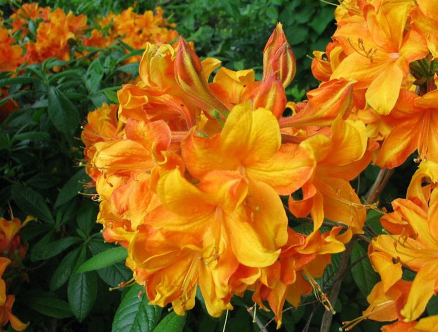 Саженцы азалии гибридной Клондайк цветут очень пышно, практически закрывая своими цветами куст. Благодаря этому растение пользуется огромной популярностью у садоводов. Пышные бутоны и тычинки привлекают внимание и источают приятный аромат. Растение может распускать цветы нескольких популярных цветов: белого, красного, желтого, оранжевого, розового. Высаживать их нужно в хорошо освещенных местах, чтобы растение не испытывало дефицита солнечного света. В качестве почвы подойдет любая плодородная земля с достаточным содержанием удобрения. Несмотря на свою хрупкость, кустарник хорошо переносит сильные морозы и может нормально себя чувствовать при температуре в -30 градусов.