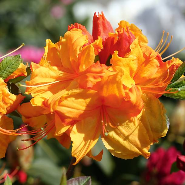 Азалия гибридная санте нектарин - это великолепное растение, которое поразит вас своей красотой и изысканностью. Ее желто-оранжевые цветы привлекают внимание и создают уютный уголок в вашем саду. Листья азалии имеют интересную форму и придают растению особый шарм.