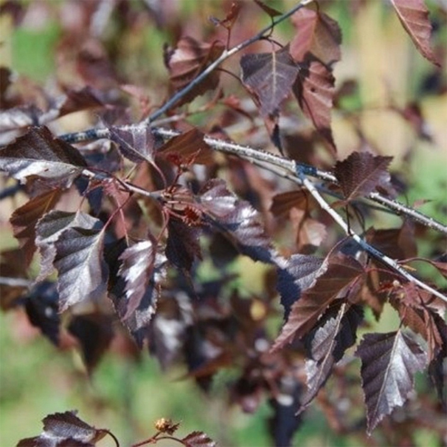 Саженцы березы повислой Роял Фрост (Royal Frost) можно высаживать на почвах разного состава. Крупномер этого дерева выглядит очень эффектно и декоративно за счет белоснежной коры и бордово-пурпурных листьев с глянцем. У молодых саженцев кора бронзовая. Листья ромбической формы с заостренными концами.