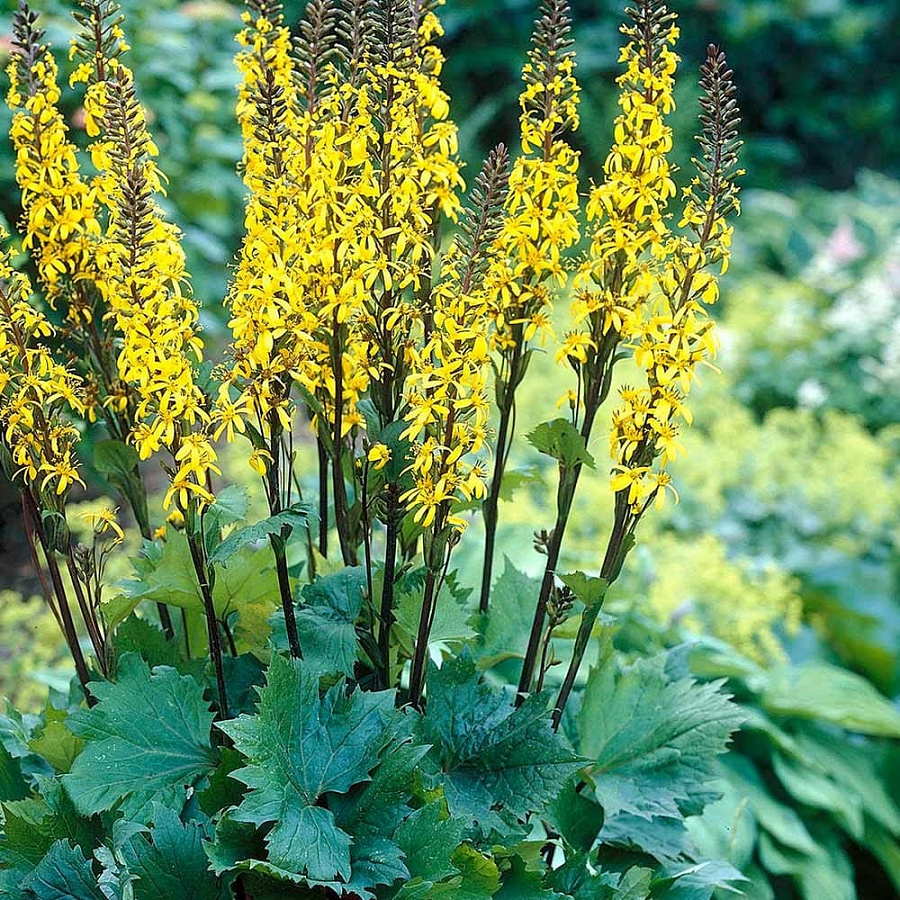 Рассада Бузульника узкоголовчатого Литтл Рокет имеет ровные стебли с крупными листьями, которые чередуются. Цветки ярко желтого тона собраны в метелки или кистевидные соцветия. Примечательной и излюбленной их особенностью является продолжительное цветение. Бузульник цветет с июля до глубокой осени. Это растение требовательно к месту посадки. Любит удобренную почву, лучше всего развиваются в полутени. Нуждаются в регулярном поливе. А если посажен на открытой лужайке, полив должен быть ежедневным и обильным. Он будет расти даже на глинистой почве на протяжении 10 и больше лет.