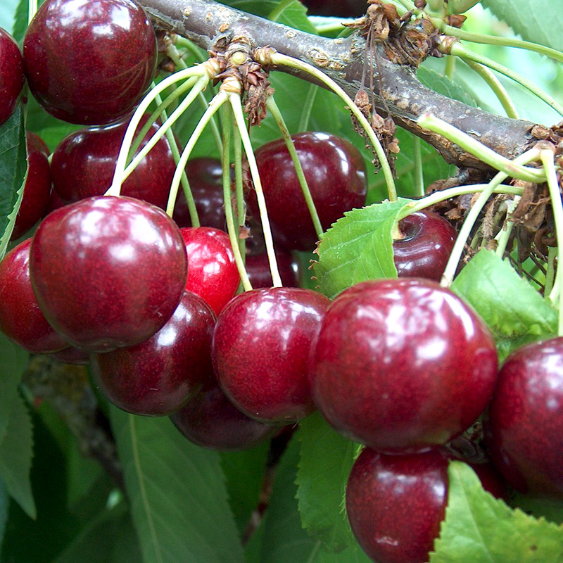 Саженцы черешни Мичуринка обладают поздним сроком цветения и созревания ягод , первые ягоды - на 6 сезон жизни крупномера. Относятся к сорту без самоопыления, «стерильному». Хорошие опылители – сорта Космическая, Сюрприз, Курортная,посадка данных опылителей рядом даст урожаи до 30 кг/д в саду. Дерево быстро достигает средней высоты и пышности кроны. Мякоть сочной ягоды красная среднеплотная с массой до 6,5 г, сладкая и легко снимается с плодоножки. Преимущества черешни Мичуринка: