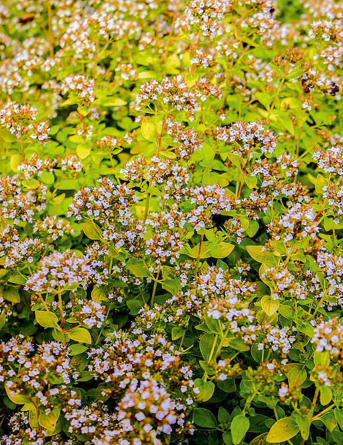 Рассада душицы обыкновенной Aureum (Ауреум) обладает ползучим корневищем, которое вырастает в душистое многолетнее травянистое растение. Относится к семейству Губоцветных. Образует густые покрытия, с овальными листиками, покрытыми мелким пушком. Имеет небольшие розово-лиловые соцветия. Ароматно все растение, что влечет в цветник бабочек и пчел. Кустик достигает 25-35 см в высоту, цветет до августа, в сентябре зреют плоды с семенами.