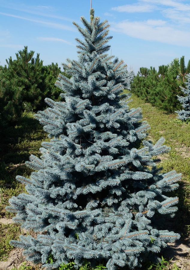 Саженцы ели голубой Koster, ежегодно вытягиваясь на 20 сантиметров и вырастая до 8—15 метров, становятся прекрасными вечнозелёными деревьями, обладающими фитоцидными свойствами. Крона плотная, конусовидная; голубовато-зелёные хвоинки, жёсткие и колючие, покрыты восковым налётом. Размножается растение семенами, получаемыми из древесных шишек, и крупномерами. Особенности ухода: