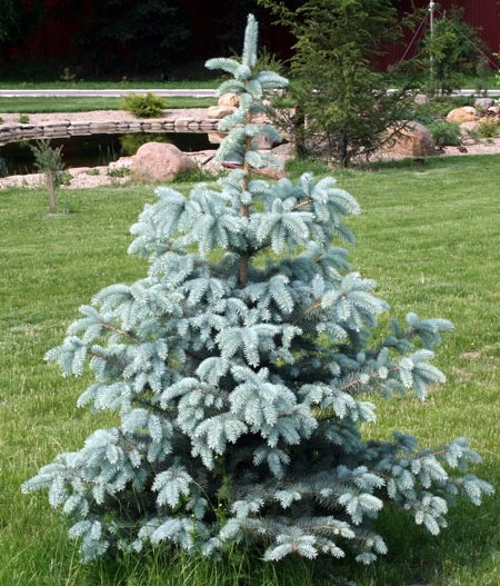 Саженцы Ели колючей Олденбург (Oldenburg) – это дерево, у которого привлекательная крепкая форма широкого конуса. Ель может вырасти в длину 15 метров. Обычно ее рост прибавляется на 30 сантиметров каждый год. За первые 10 лет она вырастает в высоту на 2-3- метра. У растения удлиненная серебряно-голубой хвоя. Ветвями формируются крепкие правильные ярусы. Ель колючей Олденбург тянется к свету и не терпит лишней влаги. В целом дерево неприхотливое. Устойчиво к низким температурам, засухе, городскому воздуху, весенней солнечной активности. Прекрасно подходит в качестве озеленения для микрорайонов, а также крупных садов.