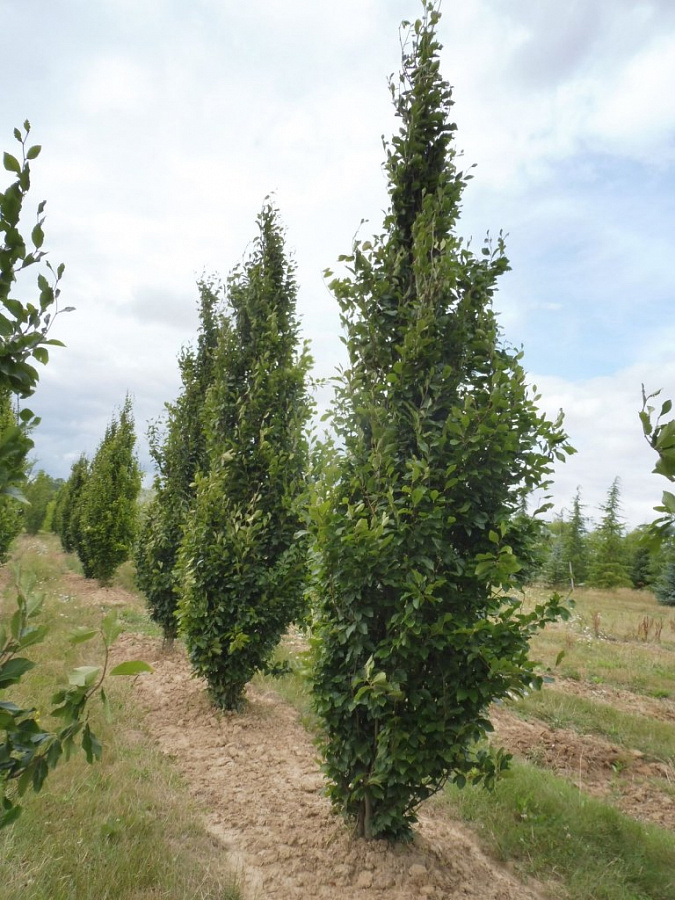 Саженцы Бука восточного Искандер (Fagus orientalis) – лиственное декоративное высокорослое дерево, достигает 20 метров. Относится к быстрорастущим сортам, за год добавляет по 50 сантиметров. Крона его вертикально направлена вверх, сформирована прямостоячими побегами. Сорт бука Искандер отличается глянцевой зеленой листвой обратнояйцевидной формы. Длина листа около 12 сантиметров. Цветет в мае мелкими желтыми, зелеными цветками. Бук Искандер – тенелюбивое растение. Хорошо растет в дренированных почвах, кислых суглинках. Не терпит засухи. Сорт отличается средней морозоустойчивостью. На зиму его ствол лучше укрывать.