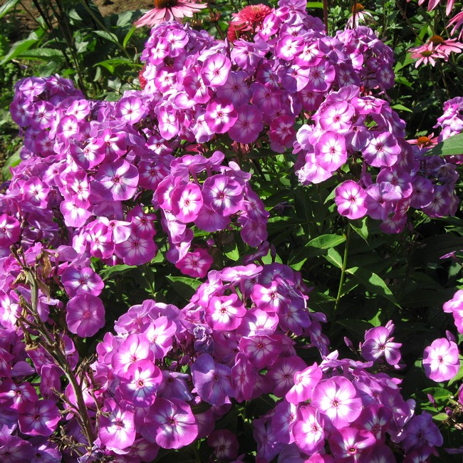 • крупные в диаметре цветки. Цвет у лепестков насыщенный пурпурно-фиолетовый. Центр каждого цветочка украшает большая белая звезда. Семена могут не сохранять особенности гибридных сортов, поэтому размножать лучше черенкованием или делением куста. Уход за флоксом метельчатым Лаура под силу даже начинающему цветоводу.