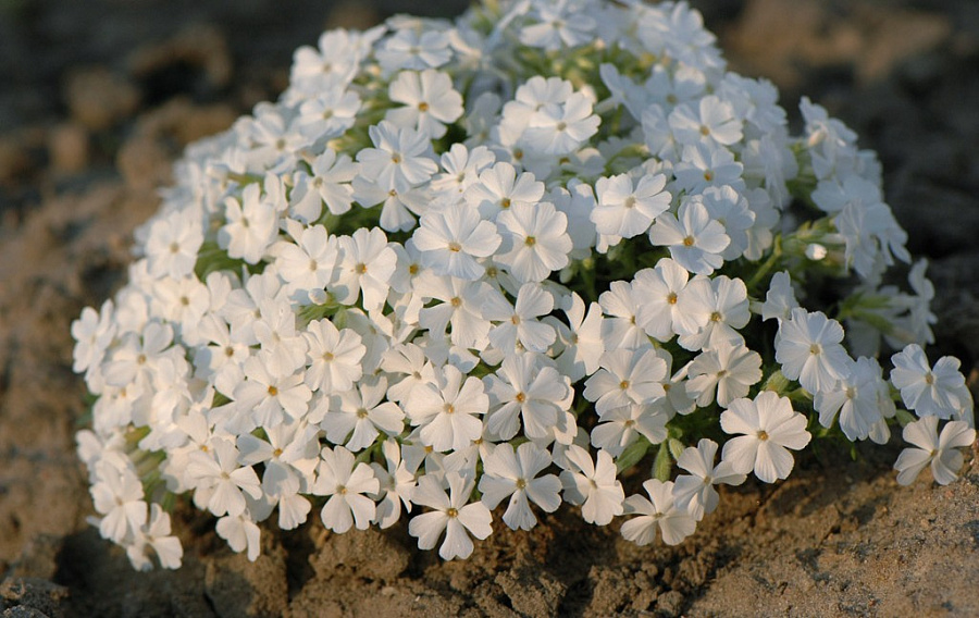 Флокс сорта White Delight (Уайт Делайт) отличается своими белыми цветками с небольшой голубизной. Он помогает воссоздать на участке живой ковер. После завершения цветения рекомендуется сокращать толщину дернинки на несколько сантиметров, чтобы предотвратить формирование оголений. Цветки чисто белые звездчатые по форме. Пересаживать и сажать кустарник можно в любое время, но лучше не пытаться делать это поздней осенью. Грунт должен быть рыхлым и сухим. На слишком плодородной почве процесс цветения проходит не так ярко и насыщенно. Уход предполагает внесение удобрений, проведение прополок и поливов, особенно перед цветением. При активном росте кустарника нужно внести в почву азотно-калийные подкормки, а в середине лета – минералы.