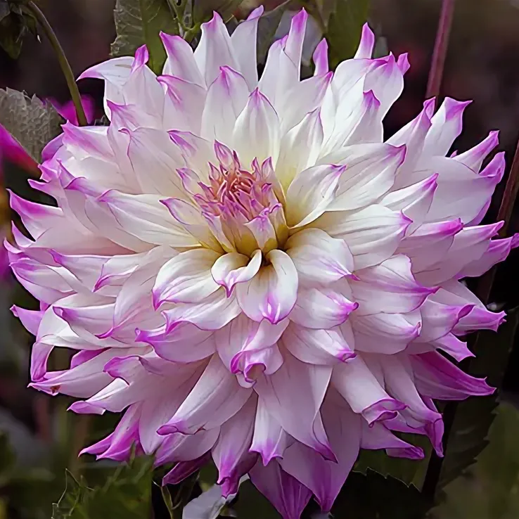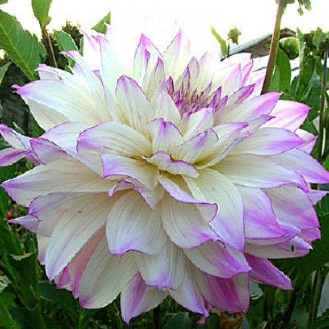 Георгина крупноцветковая Ferncliff Illusion - это великолепное растение с белыми цветками и сиреневыми кончиками, которое поразит ваш взгляд своей изысканной красотой. Ее стебель прочный и устойчивый, а размеры растения позволяют ему вырасти великолепным и внушительным. Листья георгины имеют форму, напоминающую лепестки цветка, что придает растению особый шарм и изящество.