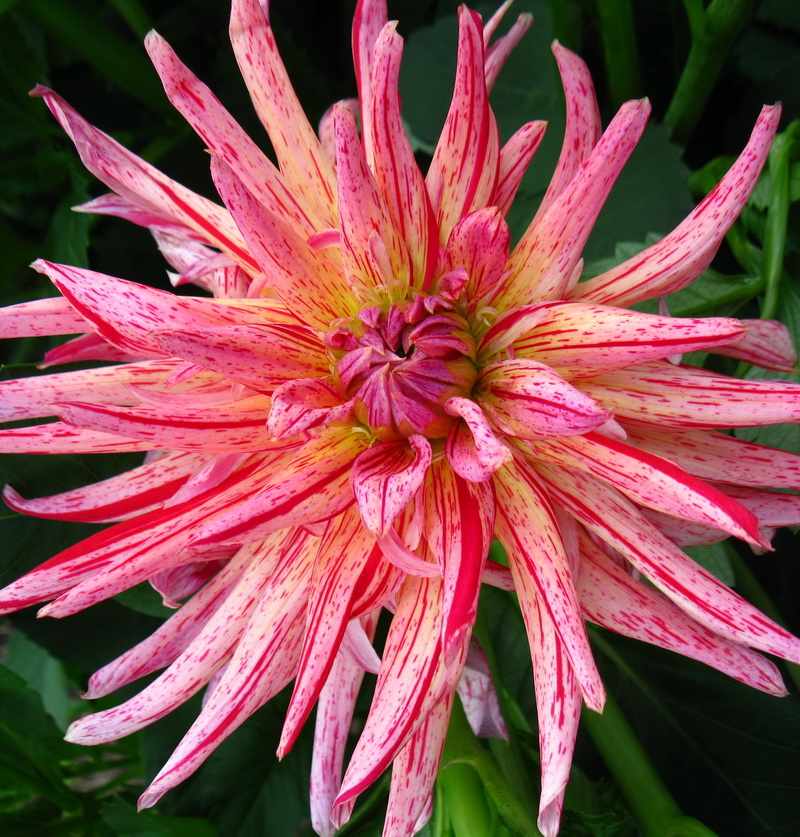 Георгина полукактусовая "Ален Мимун" - это удивительное растение с яркими желто-красными цветками, которые напоминают огненные пламена. Ее стебель прочный и прямой, достигает впечатляющей высоты, что делает эту георгину настоящим цветочным гигантом в вашем саду. Листья имеют необычную форму и создают уникальный контраст с яркими цветами.