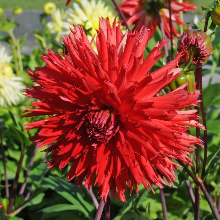 Георгина полукактусовая апач блау - это великолепное растение с красно-пурпурными цветками, которое поразит вас своей красотой и изысканностью. Ее стебель устойчивый и прочный, что делает ее идеальным выбором для вашего сада или огорода. Размеры этого растения позволяют вам создать уникальный уголок природы, который будет радовать глаз в течение всего сезона цветения.