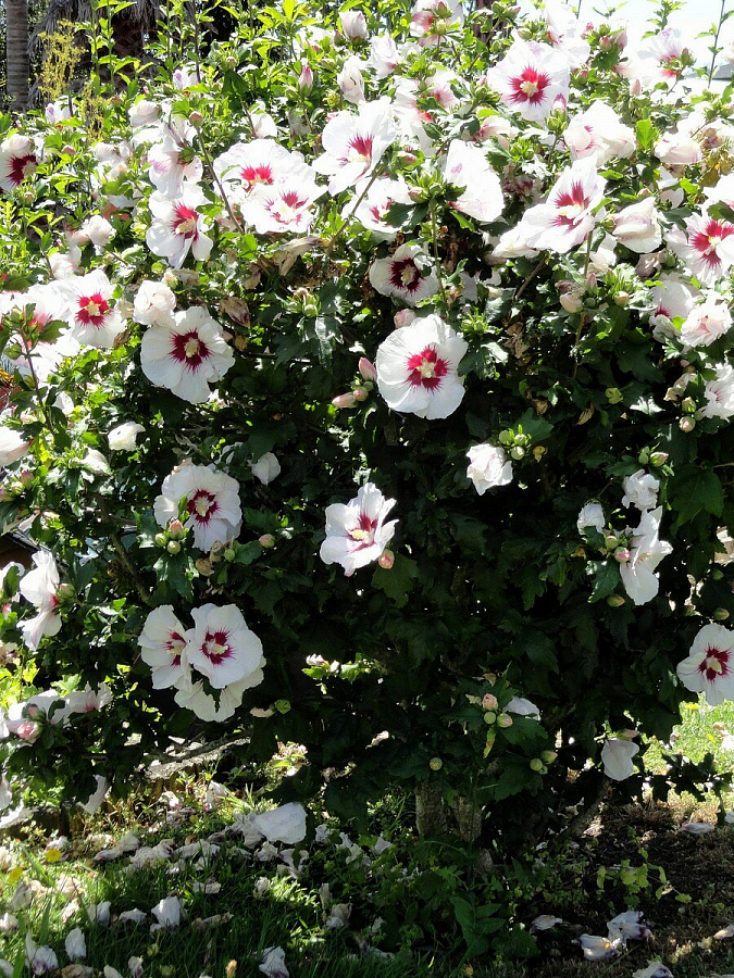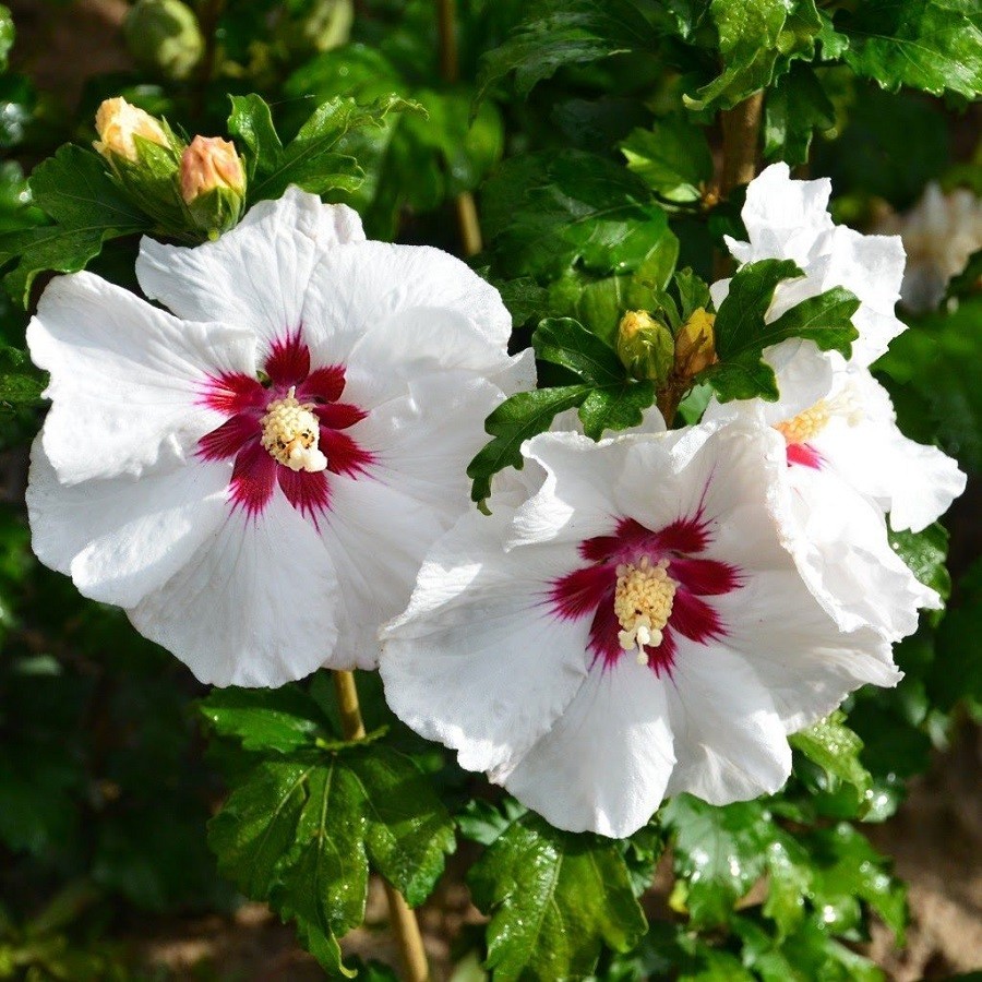 Саженцы гибискуса Рэд Хат (Red Heart) имеют крупную, овальную, трехлопастную листву. Стебли прямостоячие, крепкие вырастают около 2 метров в высоту. В июне идо конца сентября цветет крупными цветами белого окраса с красной серединкой, что выглядит очень контрастно и ярко. Куст густой и ветвистый. Плюсы гибискуса Рэд Хат: - крупное цветение с интересным окрасом - пышный кустик - не требуется сложный уход Крупномеры гибискуса Рэд Хат не привередливы к выбору почвы, однако, лучше растут на рыхлой, дренированной земле. Растение нуждается в обильном солнечном свете. Контрастно выглядит в смешенных композициях.