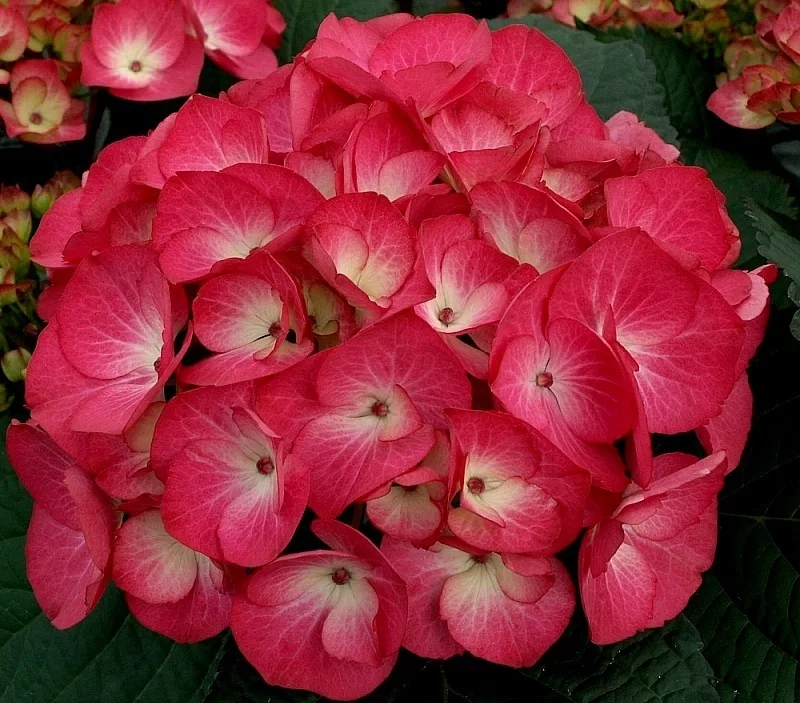 Гортензия крупнолистовая "Заския" - это великолепное растение с красивыми крупными цветками, которые радуют глаз своей яркой красотой. Ее ствол прочный и устойчивый, а размеры растения достигают 20-25 см в диаметре. Листья гортензии имеют ярко-зеленую окраску как весной, так и осенью, что делает ее привлекательной на протяжении всего сезона.