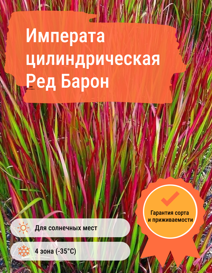 Рассада Императы цилиндрической Ред Барон (Red Baron) - злаковое растение с длинными листьями с необычным красноватым оттенком. Листовые пластины напоминают широкое лезвие ножа: они продолговатые с заостренными верхушками, располагаются поочередно, устремлены вверх, по текстуре жесткие. Молодые листья ярко-зеленого цвета у основания и с красноватыми верхушками, по мере роста рубиновый оттенок охватывает листовую пластину полностью. Существует ряд нюансов, которые следует помнить при высаживании: нужно удалять появляющиеся зеленые отростки, высаживать рассаду на открытых солнечных местах. Несмотря на то, что данный сорт будет расти и в полутени, лучше найти максимально жаркое место. Не переносит застойных вод. Может расти на супесчаных и суглинистых грунтах. Реакция может быть нейтральной, допускается слабокислая. От переувлажнения грунта возможно поражение грибковыми инфекциями. Проведите обработку фунгицидом. Растение не приживается – влаги недостаточно. Листовые пластины не краснеют – освещение недостаточно яркое.