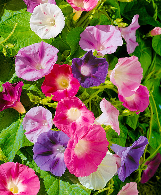 Ипомея смесь окрасок - это настоящее воплощение красоты и изящества в мире растений. Ее тонкие стебли украшены разнообразными цветами, создавая неповторимый калейдоскоп оттенков. Высота этого растения может достигать до 300 см, а диаметр его цветков - от 5 до 8 см. Листья ипомеи имеют форму сердца, что добавляет ей нежности и очарования.