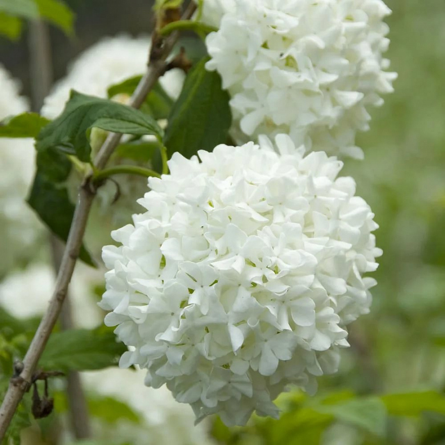 Саженцы калины бульденеж Розеум (Roseum) садоводы ценят за уникальный внешний вид – растение ежегодно на протяжении целого месяца усыпано белоснежными снежками! Восхитительные соцветия и ярко-зеленые листья быстро станут изюминкой любого сада. От остальных сортов калины этот сорт отличается этот сорт тем, что не плодоносит. Но имеет массу достоинств: