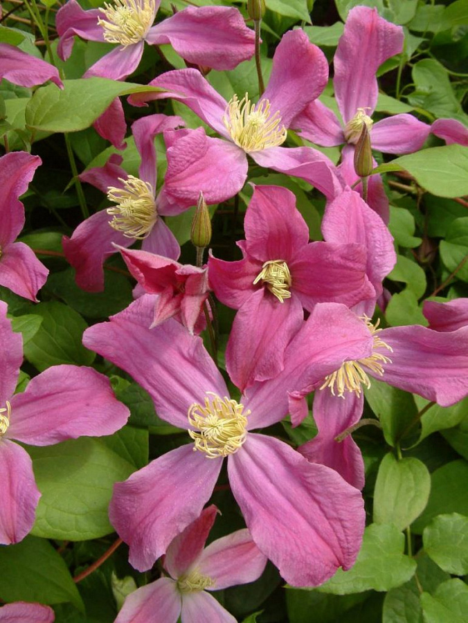 Саженцы клематиса гибридного Инспирейшн (Inspiration) предпочитают теплые солнечные места, защищенные от ветра и сквозняков. Подходят для выращивания, как в открытом грунте, так и в контейнерах. Цветение обильное и продолжительное с июня до сентября. Цветки в диаметре достигают 5-8 см, пурпурно-розовой окраски. Особенностью клематиса гибридного Инспирейшн (Inspiration) является то, что растение никогда не цепляется за опоры, а только опирается на них. Используют для декорирования сада, высадив саженцы лианы между деревьями и кустарниками, а так же для украшения цветника или клумбы.