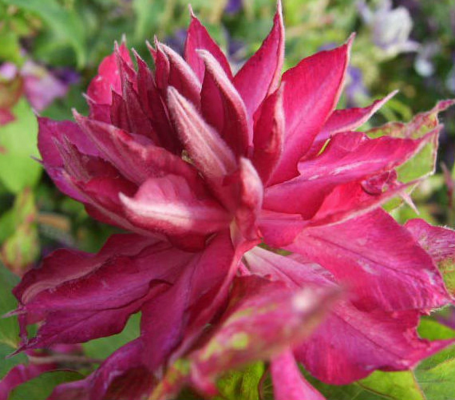 Саженцы клематиса гибридного Kaen предпочитают солнечные, защищенные от ветра места с водопроницаемой, суглинистой, слабощелочной или нейтральной, плодородной почвой. Высаживать растения необходимо рядом с опорами, чтобы длинные лианы (2-2,5 метра) имели за что цепляться. Цветет многолетник обильно в мае — июне. Второе цветение не такое сильное, наблюдается в августе — сентябре. Цветы махровые, диаметром 8-14 см, красно-розового окраса с розовой полоской посередине лепестка. Саженцы клематиса гибридного Kaen широко применяются для вертикального озеленения. Их высаживают вдоль забора, рядом с беседками, у парадного входа и террас.