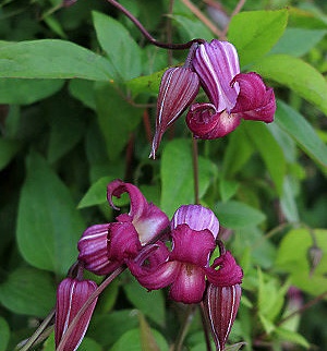 Саженцы Клематиса гибридного Princess Red (Clematis) как и все сорта лианы любят солнечные лучи и не переносят сильных ветров и сквозняков. Вырастает до 3 метров, нуждается в опоре для выращивания в вертикальном положении. Почва подбирается суглинистая или супесчаная. Главное, чтобы она была рыхлая. Принцесс Рэд цветет очень долго. С июля по октябрь растение покрывается небольшими кувшинчиками розово-красного цвета. Данный сорт можно выращивать около ограждения, беседки, решетки или другой садовой опоры.