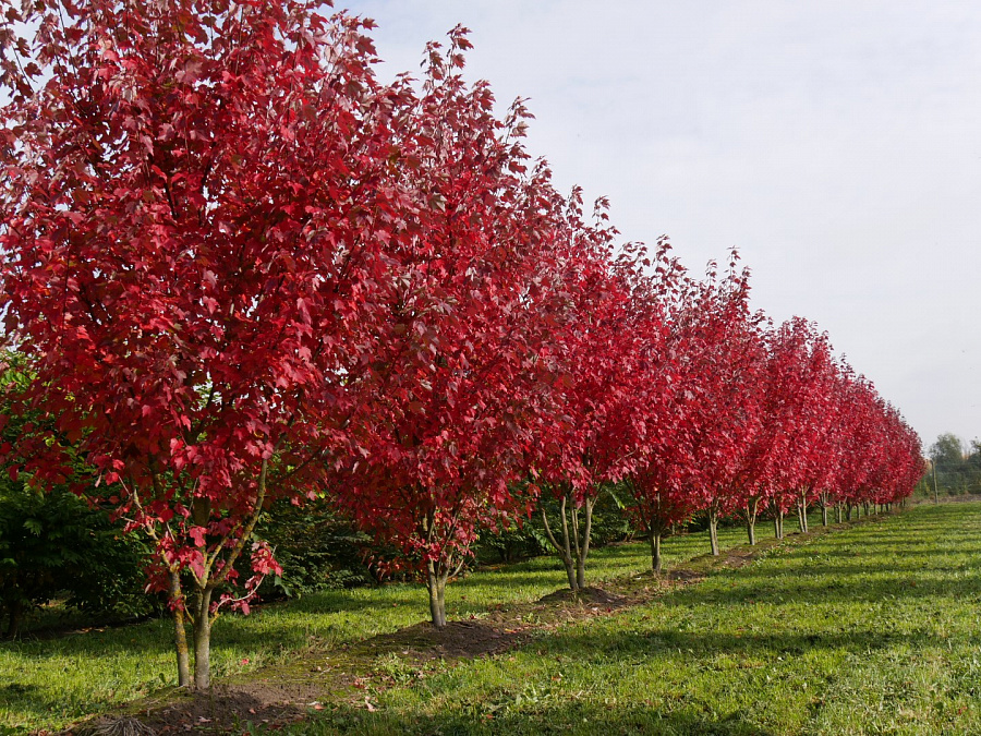 Саженцы клёна красного Брендивайн (Brandywine) позволят украсить осенний сад, парк или придомовую территорию в незабываемый ярко-красный цвет. Взрослое дерево среднерослое — до 7-9 метров в высоту с диаметром кроны 3-4 метра. Крона летом зелёная, но к осени окрашивается в ярко-красный, с глянцем, цвет, постепенно переходящий в пурпурный. Цветёт мужскими цветами, бесплоден. К грунтам не требователен, но лучше растёт на богатой почве со средним уровнем влажности. Клён Брендивайн можно высаживать крупномерами. Устойчив к дымам и газам. Плохо воспринимает уплотнённую почву, в засушливый период желателен полив.