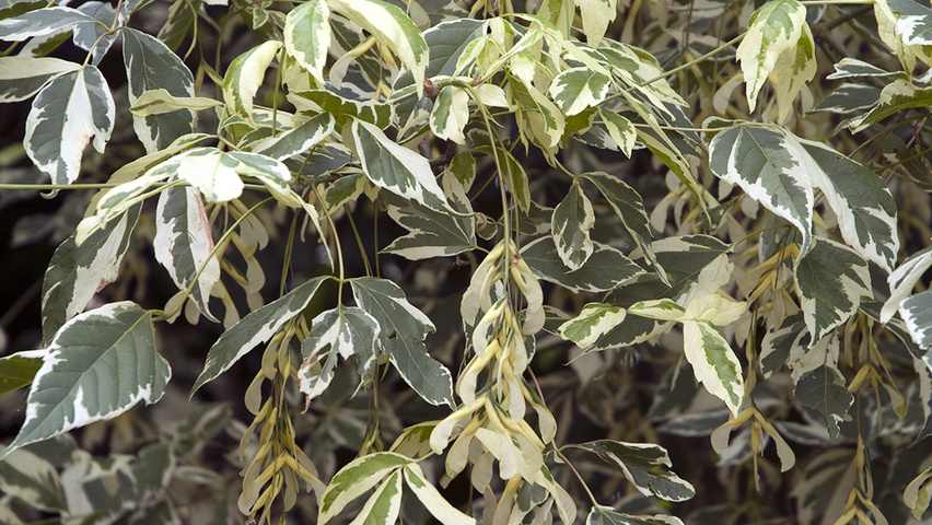Клен ясенелистный Variegata примечателен необычной окраской листвы, поверхность которых имеет зеленую окраску и кремовую окантовку. Растение сохраняет декоративность, не нуждаясь в сезонной или формирующей обрезке. Уход заключается в периодических поливах.