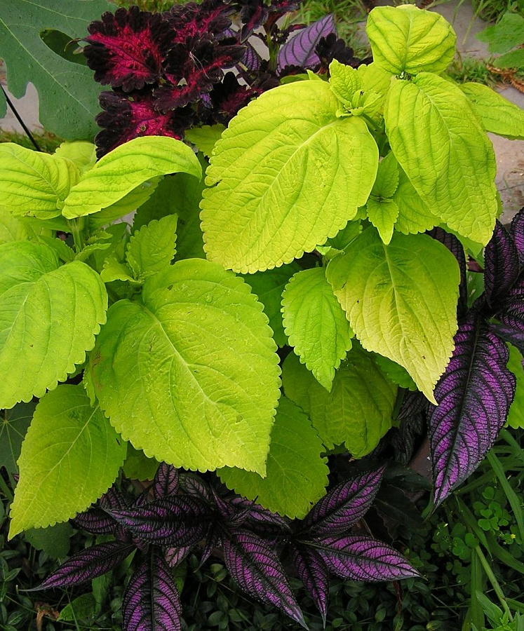 Колеус Giant Exhibition Limelight - это удивительное растение с яркими зелеными листьями, которые привлекают внимание своей необычной формой. Высота этого растения может достигать до 50 см, что делает его идеальным для групповых посадок в саду или на балконе.