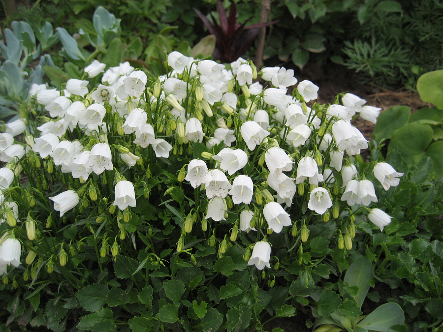 Колокольчик ложечницелистный альба - это изысканное растение с белыми колокольчиками, которые напоминают нежные перья. Его стебель достигает высоты до 30-40 см, что делает его идеальным выбором для создания композиций в саду или на клумбе. Листья этого растения имеют форму ложки, что добавляет ему уникальности и привлекательности.