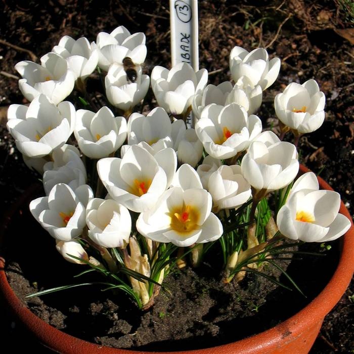 Луковицы крокуса Aubade высаживают с сентября по ноябрь на хорошо освещенные или теневые участки. Это неприхотливые растения, которые хорошо растут в любых почвах. Единственное, не рекомендуется высаживать луковицы крокуса Aubade в места с застоем воды. Высота растения достигает до 10 см. Цветет на протяжении двух-трех недель в марте — апреле. Цветки бокаловидные, снежно-белые с кремово-желтым пятном в основе лепестков. Они обладают очень нежным и приятные ароматом. Для создания интересных декоративных композиций растения высаживают группами до 10 луковиц.