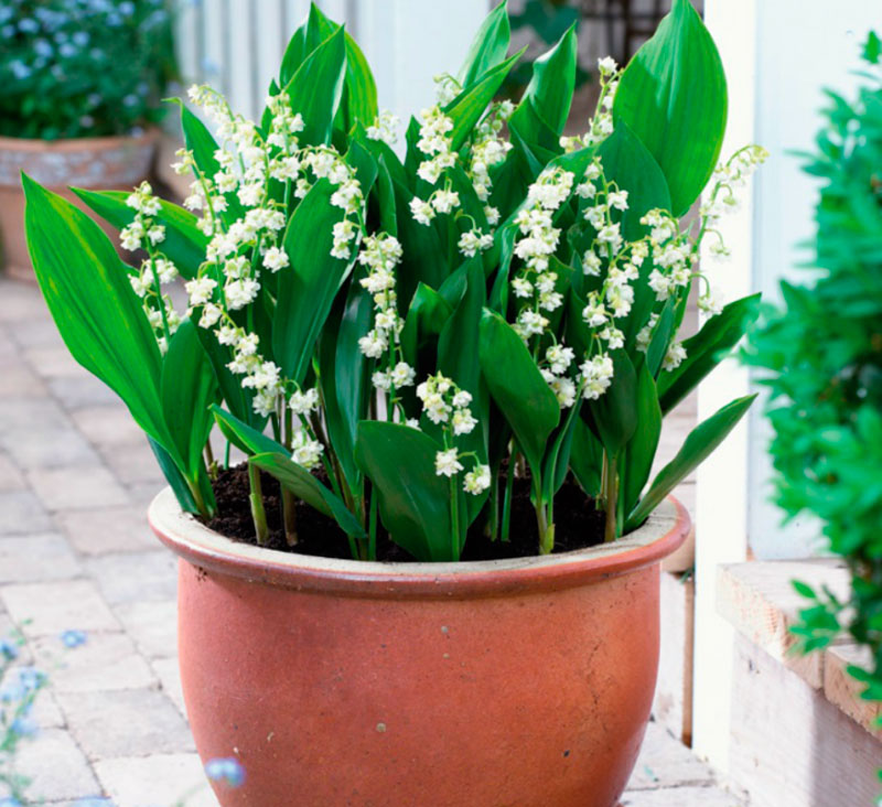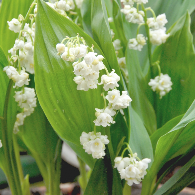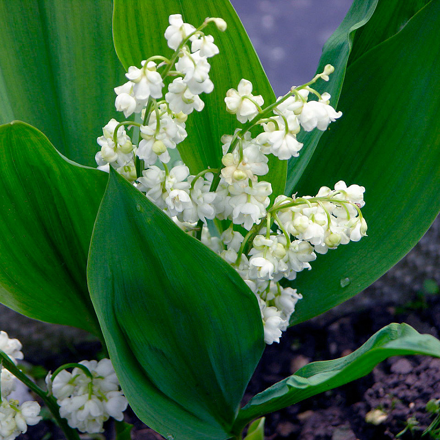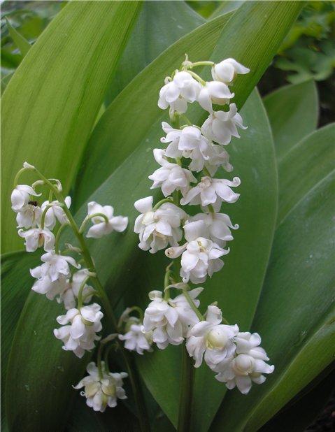 Рассада ландышей "Пролификанс" (Prolificans) Листья ланцевидные или обратнояйцевидные с продольным жилкованием. Шириной - 4 - 5 см., длиной - 13 - 15 см. Сохраняются они до августа, потом полегают. Время цветения - май - июнь. Цветы белые, махровые. Они густо усеивают цветонос. На одном может быть до 15 штук. Запах цветов несильно выраженный, тонкий. Высаживают рассаду ландышей "Пролификанс" на частично или полностью затененные участки. Растение способно расти и на солнце. Почва подходит плодородная, влажная, без застоя влаги.