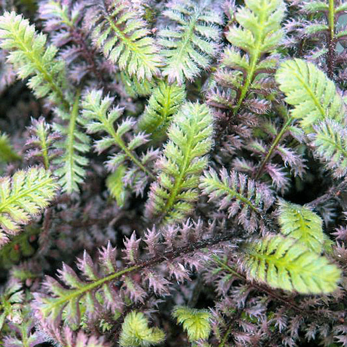 Рассада лептинеллы гребенчатой (Leptinella pectinata) вырастает около 30-40 см в высоту. Листва обладает интересным окрасом фиолетово-бронзового цвета. В мае и июне цветет небольшими цветочками зелено-желтого цвета. Цветочки собраны в плоские зонтичные цветения, что достаточно привлекательно на вид. Достоинства лептинеллы гребенчатой: