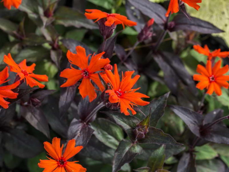 Семена и рассада лихниса Аркрайта Оранж Цверг (Orange Zwerg) понравятся любителям декоративных многолетников. Высота компактного куста не превышает 30 см. В июле распускаются огненно-оранжевые цветы, которые эффектно смотрятся на фоне темно-бордовых листьев. Цветение продолжается до конца лета.