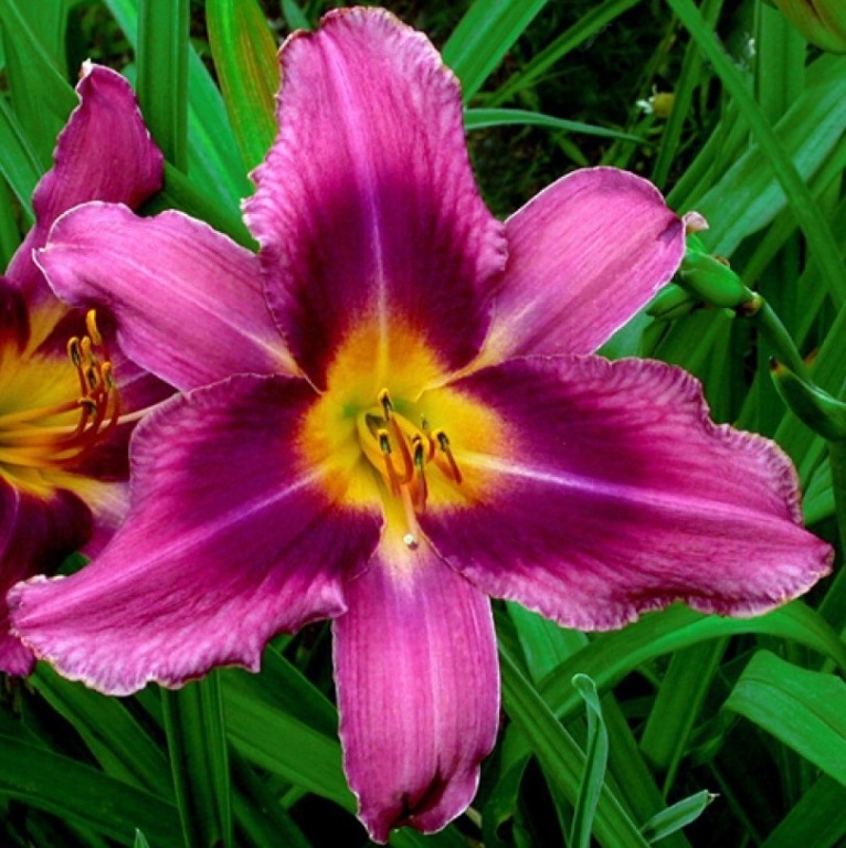 • Окраска цветка : Фиолетово-пурпурный с темным глазом и желтым горлом