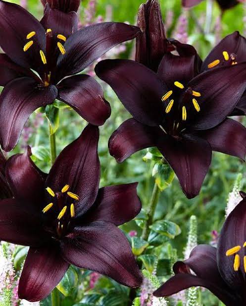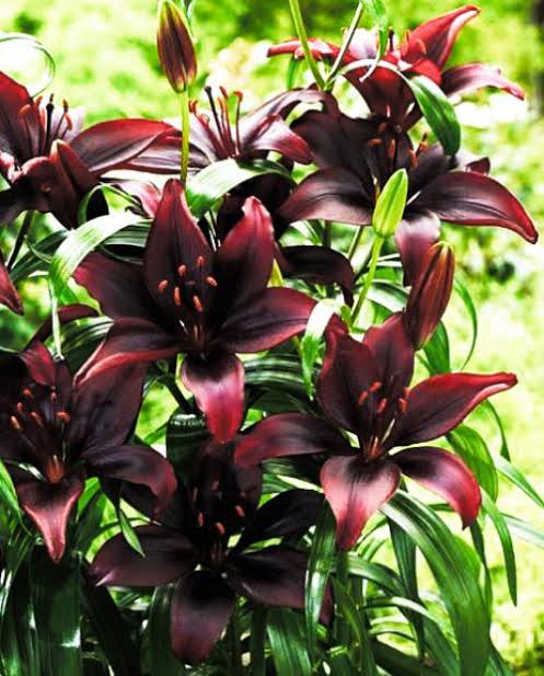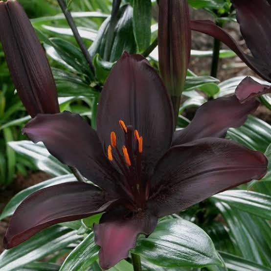 Луковицы лилии азиатской Блэк Лист порадуют не только величественными размерами своих цветоносов, но и невероятно яркими, привлекающими внимание крупными цветами. Лепестки лилии имеют множество переливов разных оттенков. Основной темный малиново-розовый цвет дополнен фиолетовым и пурпурным отливом. Таким же темным цветом оформлены края лепестков. Красочным и ярким элементом выступают контрастирующие с основными оттенками оранжевые пыльники. Цветы прекрасно смотрятся на цветоносе, который обильно покрыт темно-зелеными, слегка сизоватыми листьями. Цветы долго сохраняют свежесть в срезанном виде.