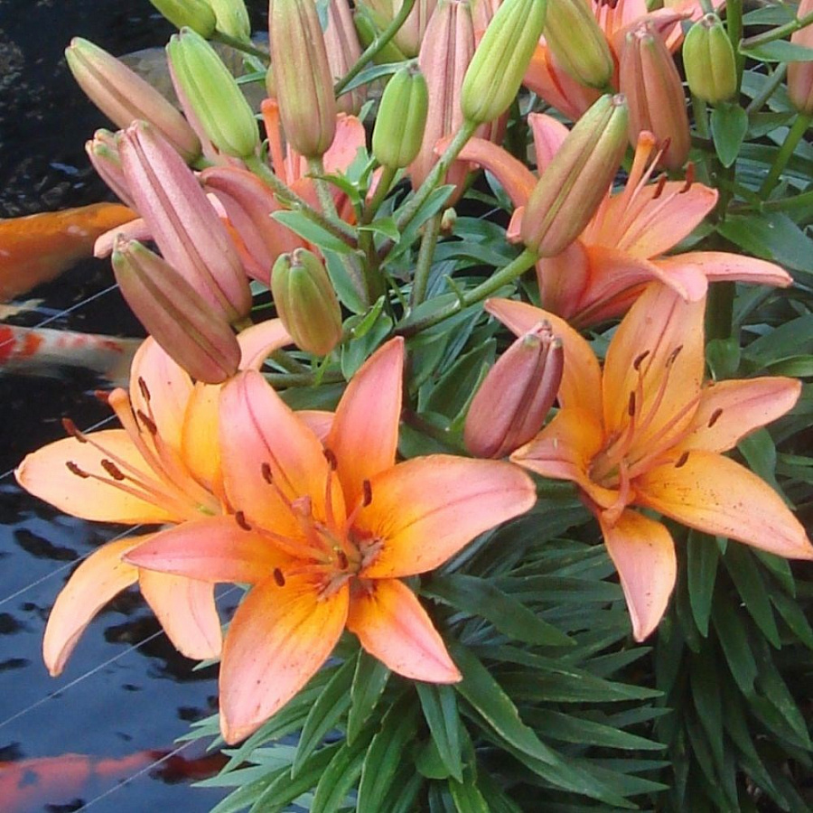 • Окраска цветка : лососево-розовый с желтыми мазками в центре, обильное цветение