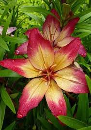 Окраска цветка : персиково-желтый центр с малиново-розовыми кончиками лепестков