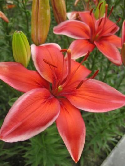 • Окраска цветка : красно-оранжевый, с широким палево-розовым кантом, лепестки загнуты вниз