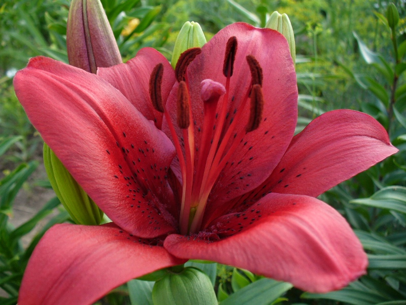 • Окраска цветка : светло-рубиновая, с редким крапом у основания, цветок глянцевый