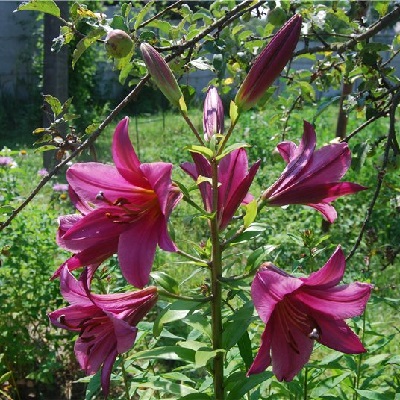 Луковицы лилии лонгифлорум Мияби относятся к длинноцветковым гибридам. Их выращивают в открытом грунте и в теплицах, а также используют для выгонки. Цветки этого сорта имеют вытянутую форму и диаметр до 17 см. Они похожи на огромные колокольчики и привлекают сочной лилово-розовой расцветкой с сиреневым оттенком.  Эти грациозные растения вырастают до 100-110 см. Они имеют крепкий, устойчивый стебель. Посадив длинноцветковую лилию в рассеянной тени, можно долгое время любоваться ее цветением. В этом случае цветы держатся дольше, и лепестки прекрасно сохраняют свою яркую расцветку.