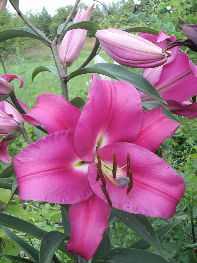 Луковицы лилии ОТ-гибрид Авентино (Lilium OT-hybrid Aventino) помогут раскрасить клумбу в яркие, но нежные цвета. Многолетник высотой до 130 см начинает цвести в середине лета и раскрывается множеством очень крупных, до 25 см в диаметре, сильно пахнущих цветков. На одном цветоносе образуется до 6 бутонов, которые раскрываются вверх и слегка в стороны. Окраска лепестка двуцветная. Основание ярко-желтое с выходящими к середине стрелками, из-за которых в сердцевине образуется симметричная шестиконечная звездочка. Остальная часть лепестка сочно-розовая, без примесей и крапа.