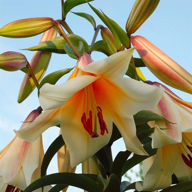 Луковицы лилии ОТ-гибрид Мисс Пикьюлиар (Lilium OT-hybrid Miss Peculiar) отличаются неприхотливостью в уходе и повышением количества цветков на каждом кусте с течением времени. Каждый год в комфортных условиях растение набирает в росте и обильнее цветет. Высота многолетника до 140 см, диаметр цветков – 27 см, к освещенности равнодушен, но нуждается в регулярном поливе и хорошо дренированной почве. Лепестки кремовые с легким розоватым отливом. От основания до середины ярко-желтые, выходящие из зеленоватой мелкой звездочки в сердцевине. Отличие сорта – в строении цветка, две трехлепестковых чаши, верхняя из которых с очень широкими лепестками, а нижняя – с узкими и удлиненными.