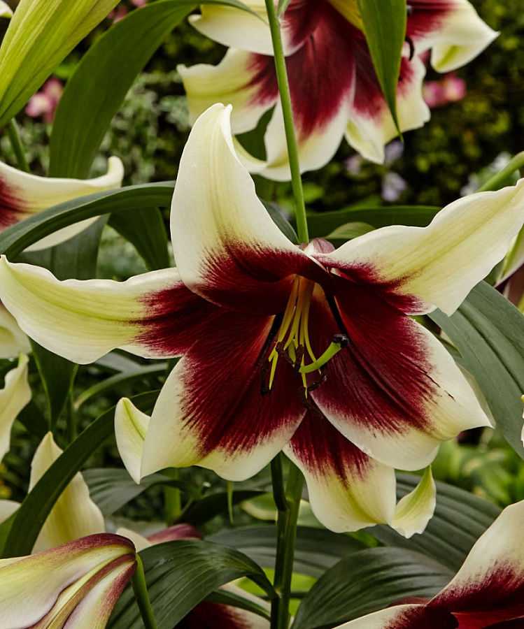 Саженцы и рассада Лилии видовой Куси Мая (Lilium) относятся к первым гибридам Непальской лилии, показанным на цветочной выставке в Челси в 2008 году. Там этот сорт произвел настоящий фурор. Его отличают мощный цветонос (высотой около 1,5 метров), большие тяжелые цветы (диаметр 26 см) и необычайно яркая окраска цветка. Окраска цветов не позволит пройти мимо этой красавицы ― они имеют белый цвет и пурпурно-бордовое пятно в центре. На одном кусте расцветает 1-2 цветка.