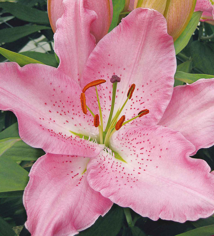 Лилия восточная "Бебоп" - это настоящий танец красок и форм в вашем саду! Это растение поразит вас своей изысканной красотой и нежностью. Цветки крупные, нежно-розового цвета с белым основанием, украшены тёмным крапом по центру и волнистыми краями лепестков. Высота растения достигает до 110 см, а размер цветка может достигать до 15 см в диаметре. Лилия восточная "Бебоп" предпочитает солнечные и полутенистые места для посадки, а также дренированные богатые почвы.