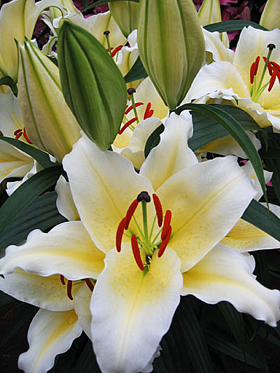 Луковицы лилии восточной Галапагос (Lilium hybrid oriental Galapagos) — нежный аристократичный цветок. Это многолетнее растение, которое достигает 120 см в высоту. Его удобно выращивать в саду или в теплице, для декора клумб или под срез. Особенно уместно оно смотрится в букетах и гармонично дополняет любую цветовую гамму. Период цветения лилий приходится на последние месяцы лета. На стеблях одновременно распускаются целые букеты крупных (до 25 см в диаметре) цветов. Лепестки матовые, со слегка волнистыми краями. Они окрашены в классический белый цвет с теплой желтой полосой в центре и такими же вкраплениями.