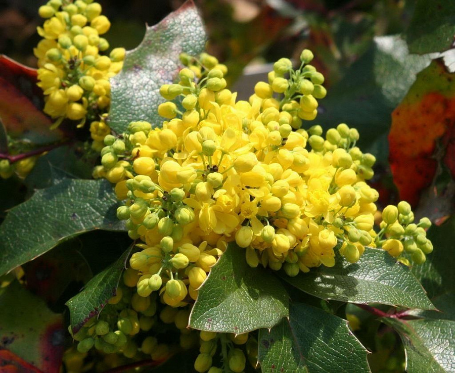 Крупномеры предпочитают плодородные свежие почвы, хорошо реагируют на внесение органики. В начале мая радует появлением крупных соцветий с мелкими желтенькими цветочками. Магония падуболистная Аполло светолюбива, но неплохо растет и в тени. В августе появляются съедобные темно-синие ягодки.Они имеют характерный кисло-сладкий вкус. Обрезки практически никогда не требует
