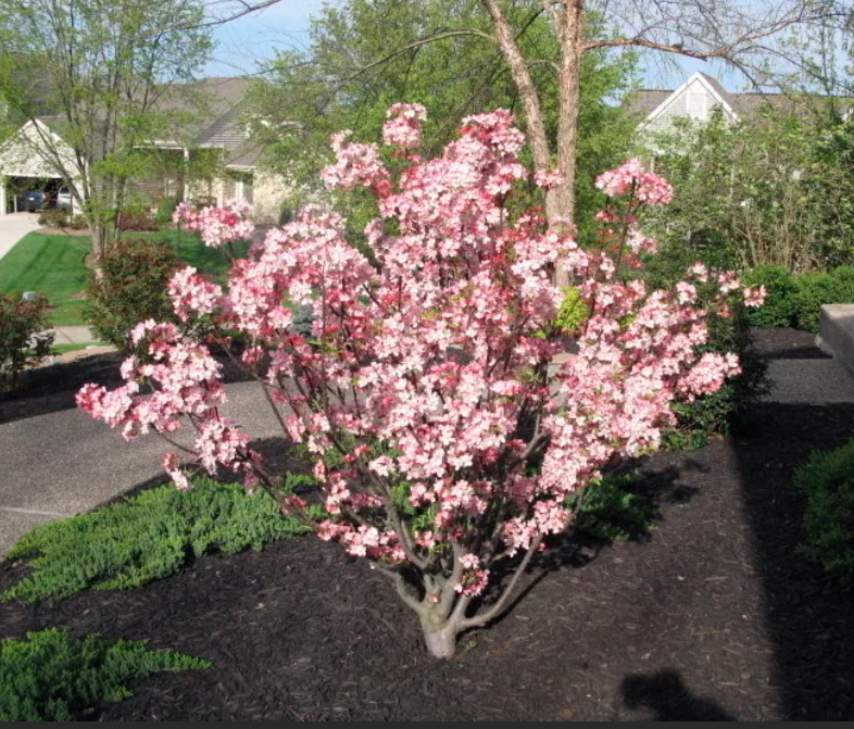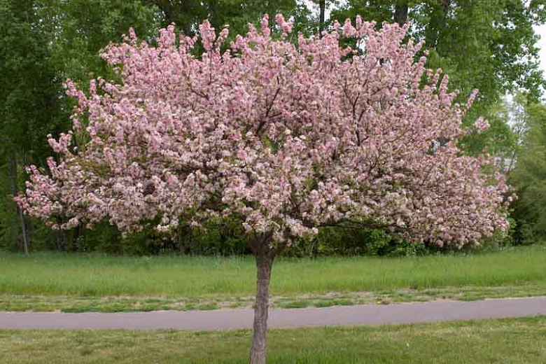 Саженцы Яблони Коралберст (Coralburst, Malus) – декоративное листопадное плодовое дерево, которое относится к среднерослым сортам, его высота не более 300 сантиметров. Крона густая, плотная, симметрично закругленная, диаметром 450 сантиметров. Сорт яблони Коралберст ценится не только за компактность, но и за свои декоративные качества. Обильное цветение отмечается в июне. Цветы махровые, розового оттенка, обильно покрывающие ветви. Листва эллиптической формы ярко-зеленая. Плоды размером около 4 сантиметров, созревают в конце августа. Сорт Коралберст отличается повышенной морозостойкостью. Он не подвержен болезням. Предпочитает открытые солнечные места и плодородный грунт.