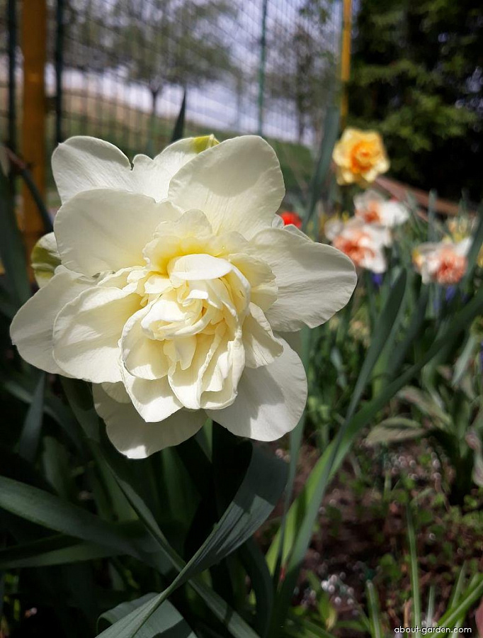 Луковицы нарцисса Калгари (Calgary) дают отличные растения для весеннего цветения на приусадебных участках. Этот цветок имеет нежные белые лепестки с такой же белой коронкой. Крупный махровый нарцисс с тонким приятным ароматом не оставит равнодушными окружающих. Цветение его может начаться в апреле или в мае в зависимости от зоны, а продолжится до 10 дней. Отлично смотрятся Калгари в букетах. А на газонах их можно комбинировать с разными цветами и зеленью. Этот сорт довольно устойчив к неблагоприятным факторам среды и к болезням. Любит: