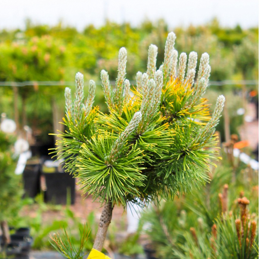 Саженцы Сосны горной Карстен на штамбе (Carsten, Pinus mugo) относятся к карликовому виду, высотой не более 1 метра. Крона компактная, подушковидная, достаточно плотная. Ее диаметр 150 сантиметров. Ежегодный прирост не превышает 6 сантиметров. Сорт Карстен излюблен ландшафтными дизайнерами не только за свой карликового рост, но и уникальное качество – смену окраса. Весной хвоинки представлены в зеленом цвете, который в летние месяцы набирает насыщенность. С наступлением холодов иголочки обесцвечиваются до коричневого оттенка. Сорт Карстен предпочитает солнечные, открытые места, не терпит затемнения, зимостоек. Но в молодом возрасте нуждается в укрытии.